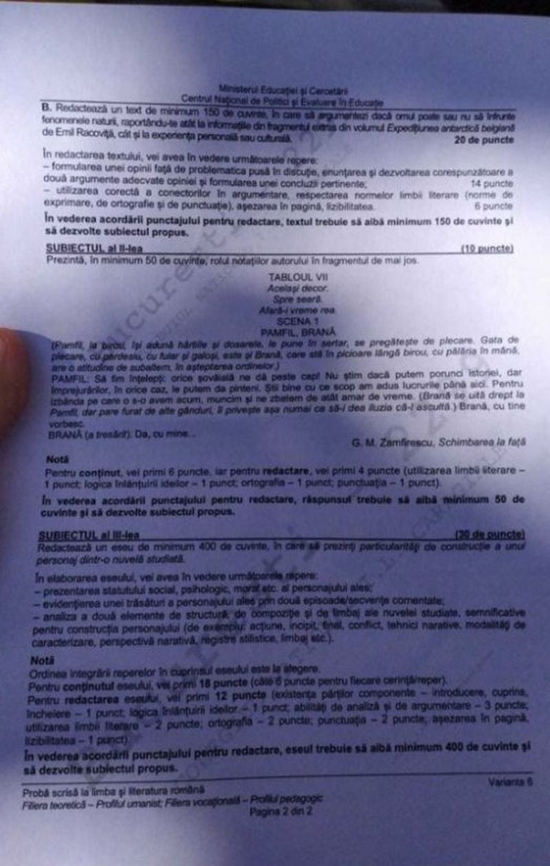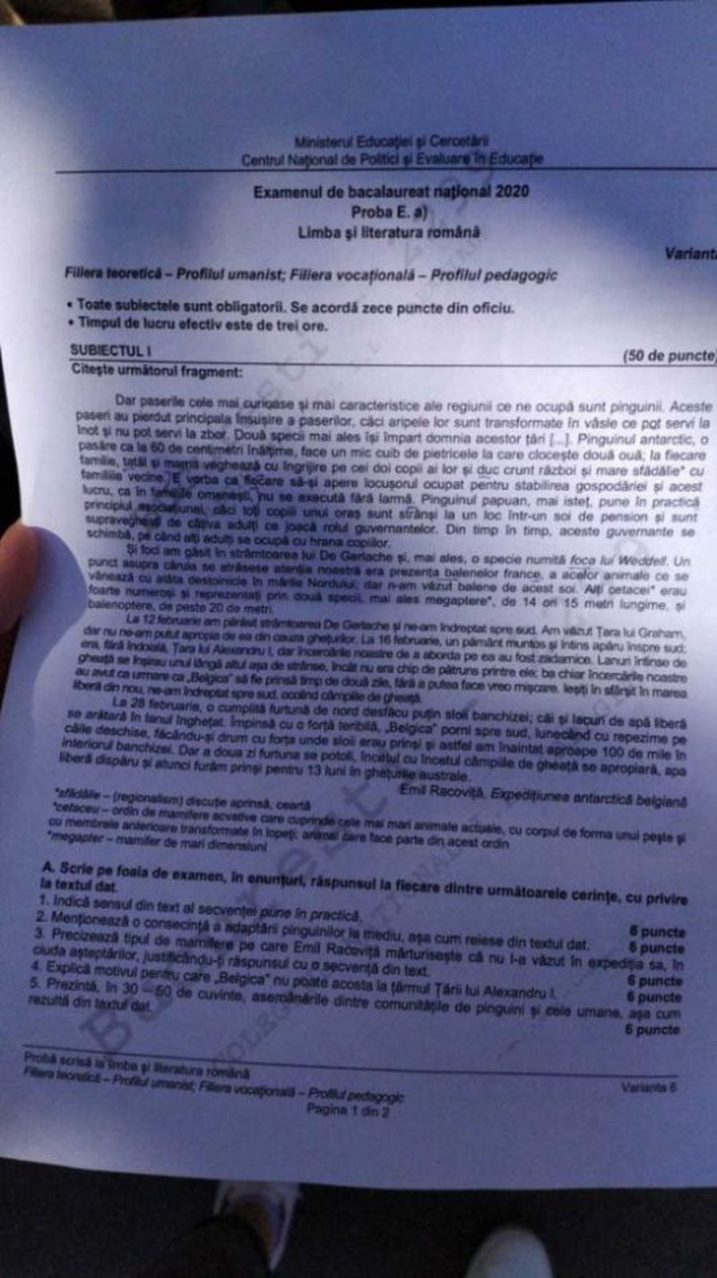 5 din 5 | Subiecte BAC 2020 la Limba și literatura română