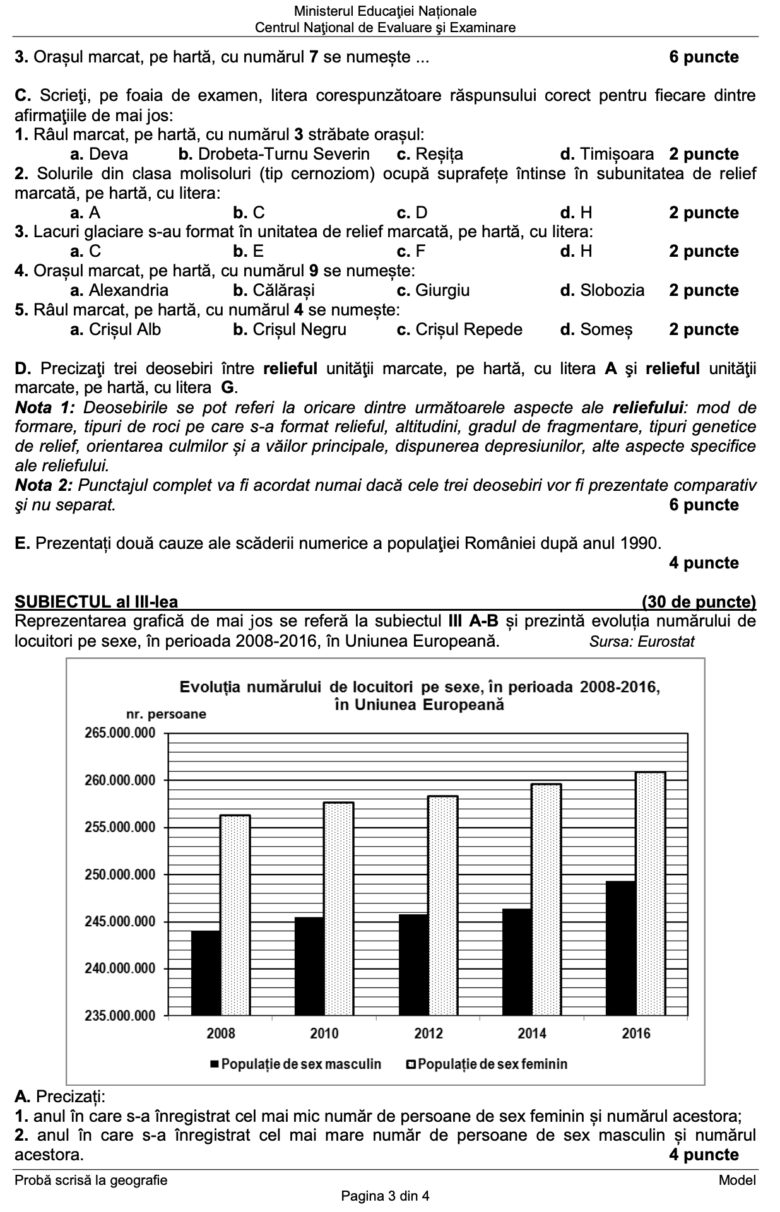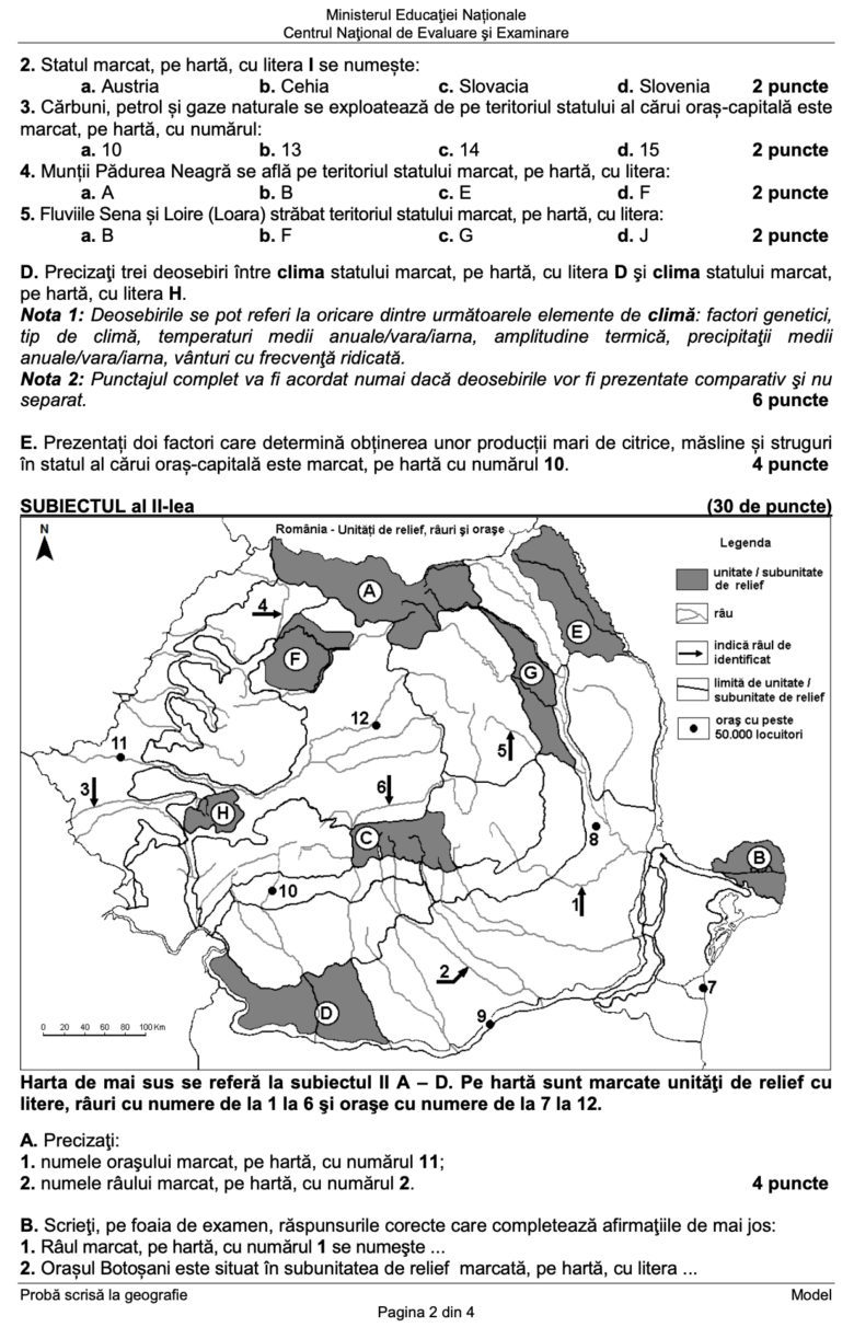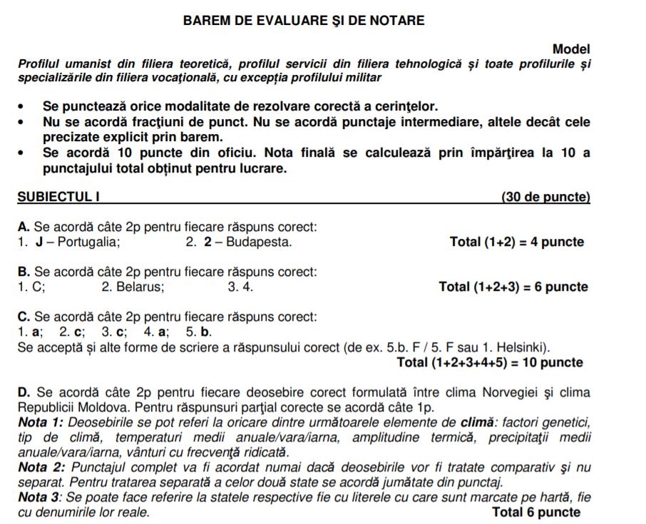 Știrilekanald.ro vă pun la dispoziție modele de subiecte și bareme de corectare. Din cauza pandemiei de coronavirus, în acest an, în mod excepțional, la disciplina geografie a fost eliminată din programa de examen materia predată în semestrele II și III, clasa a XII-a.