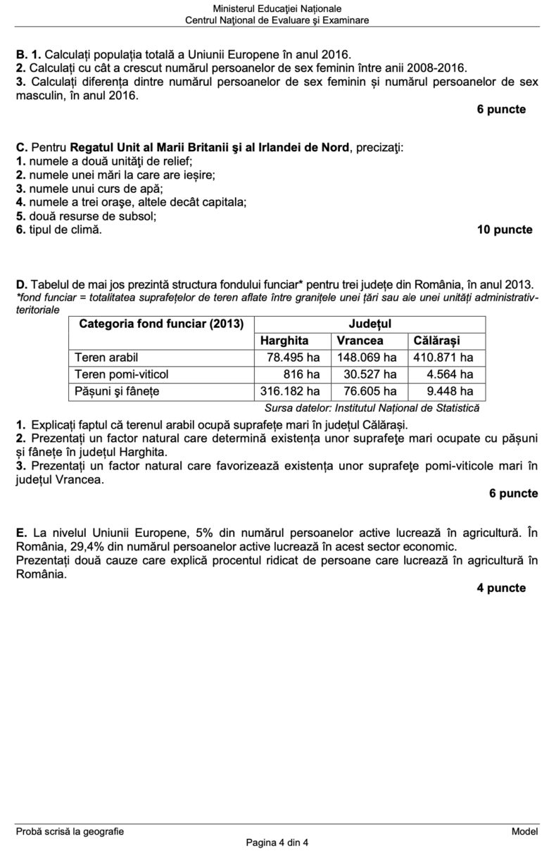 Subiecte GEOGRAFIE bacalaureat 2020, conform edupedu.ro