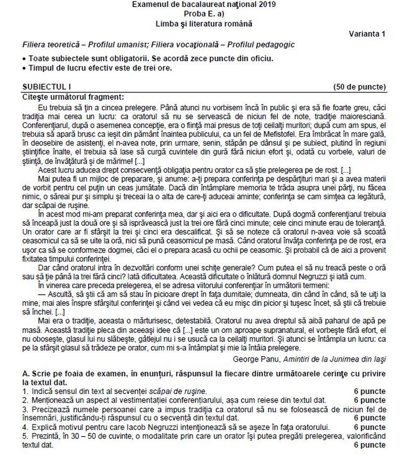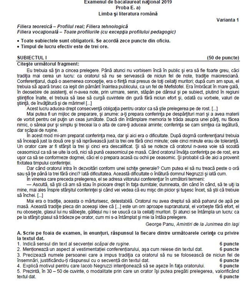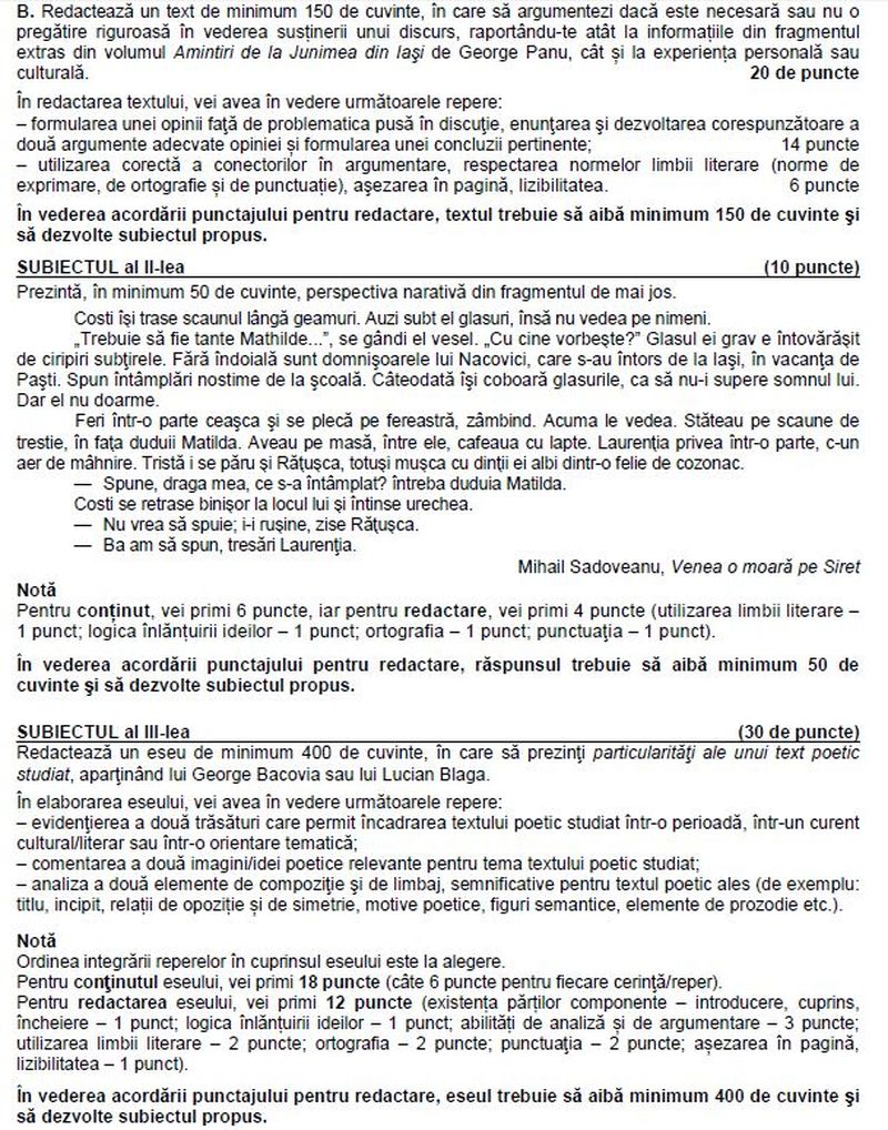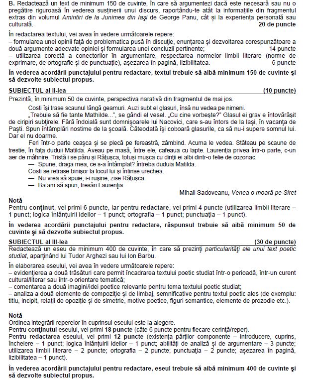 7 din 9 | BACALAUREAT 2019. Ce subiecte au avut elevii la proba de Limba și Literatura Română. BAREME