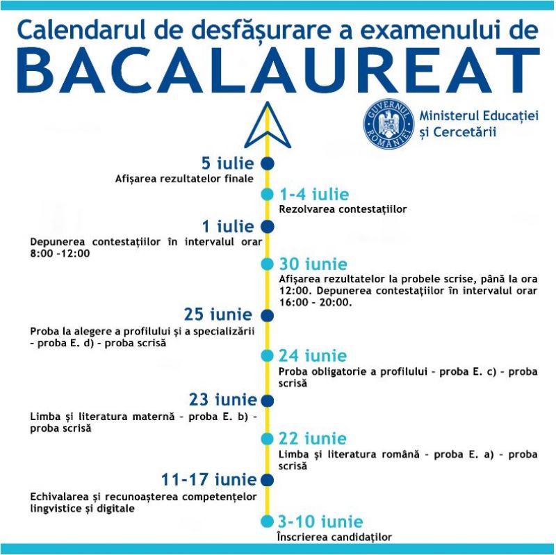 De exemplu, probele sesiunii speciale pentru Evaluarea Națională se încheie pe 4 iulie, iar prima etapă de admitere la liceu începe pe 10 iunie.