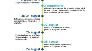 Probele scrise sunt programate în săptămâna 24- 27 august, astfel: