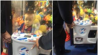 Un băiețel de trei ani a rămas blocat într-un aparat de jucării, după ce a încercat să câştige un ursuleț de pluş.