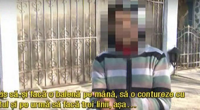 "I-a zis sa-si faca o balena pe mana, sa o contureze cu cutitul si pe urma sa faca trei linii asa.