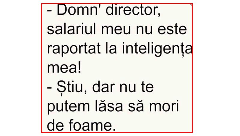 - Domnule director, salariul meu nu este raportat la inteligența mea!