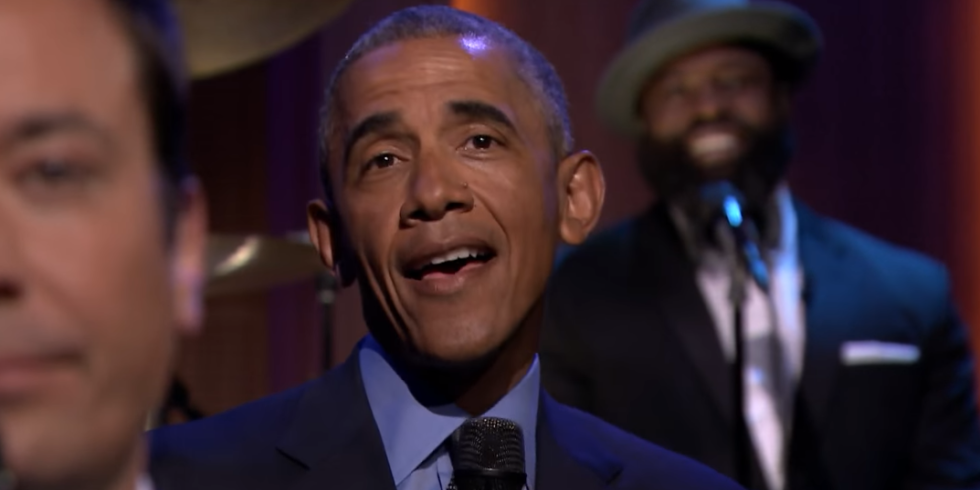 Barack Obama a demonstrat ca are un umor foarte bine dezvoltat si a acceptat provocarea lui Jimmy Fallon, de la Tonight Show, si a aparut in cadrul rubricii "Slow Jam the News", in care, pe acorduri de jazz, s-a laudat cu reusitele lui. Presedintele SUA a cantat si putin din piesa Rihannei, Work.