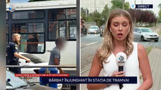 „Un bărbat a fost înjunghiat într-o stație de tramvai din Sectorul 2 al capitalei. Doi agresori sunt căutați de poliție. Colega mea, Adina Iliescu, vine cu detalii. Atenție, urmează imagini și informații cu un puternic impact emoțional.”, a spus Christian Sabbagh.