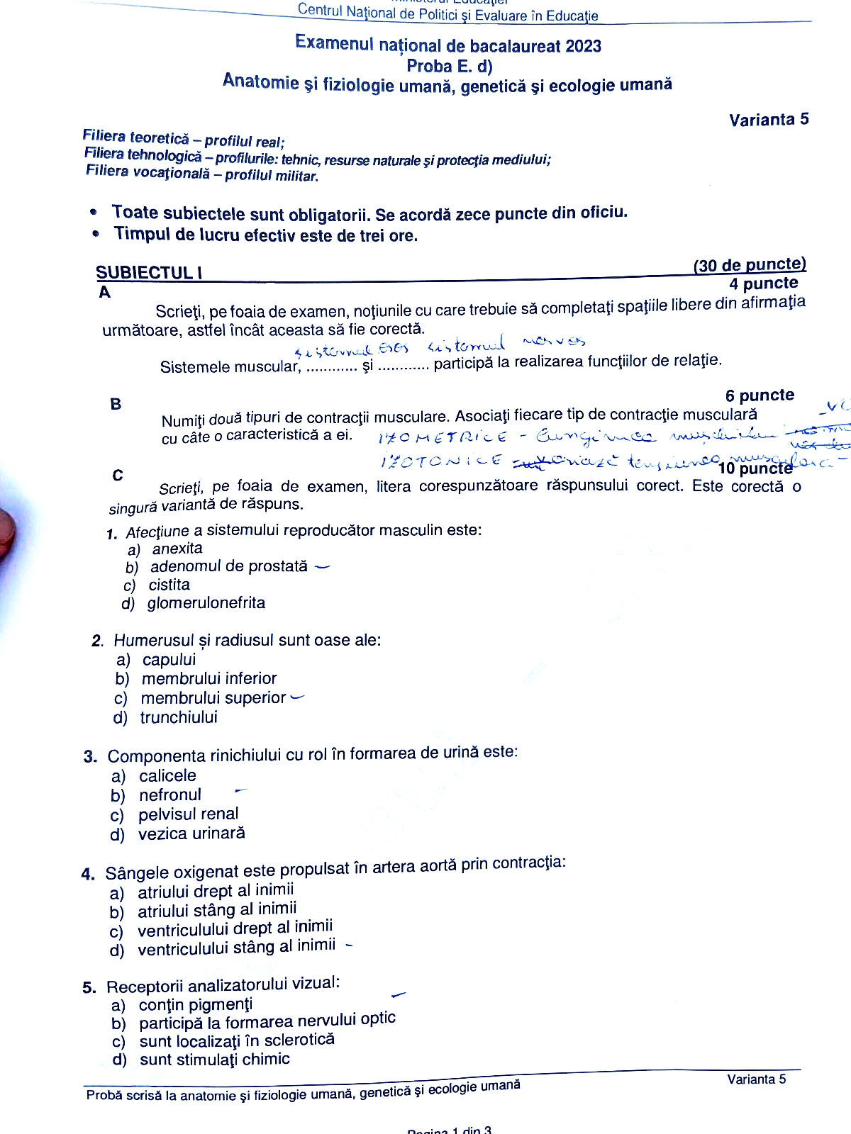 5 din 7 | Barem Biologie BAC 2023 Edu.ro. Vezi răspunsurile corecte!
