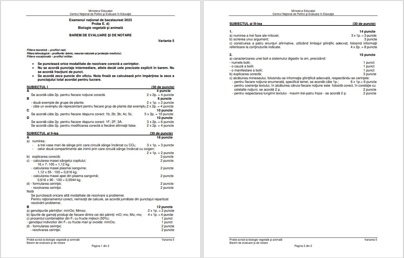 2 din 7 | Barem Biologie BAC 2023 Edu.ro. Vezi răspunsurile corecte!