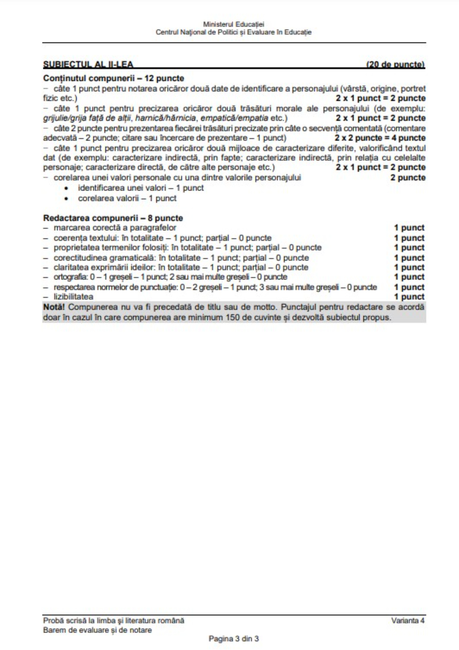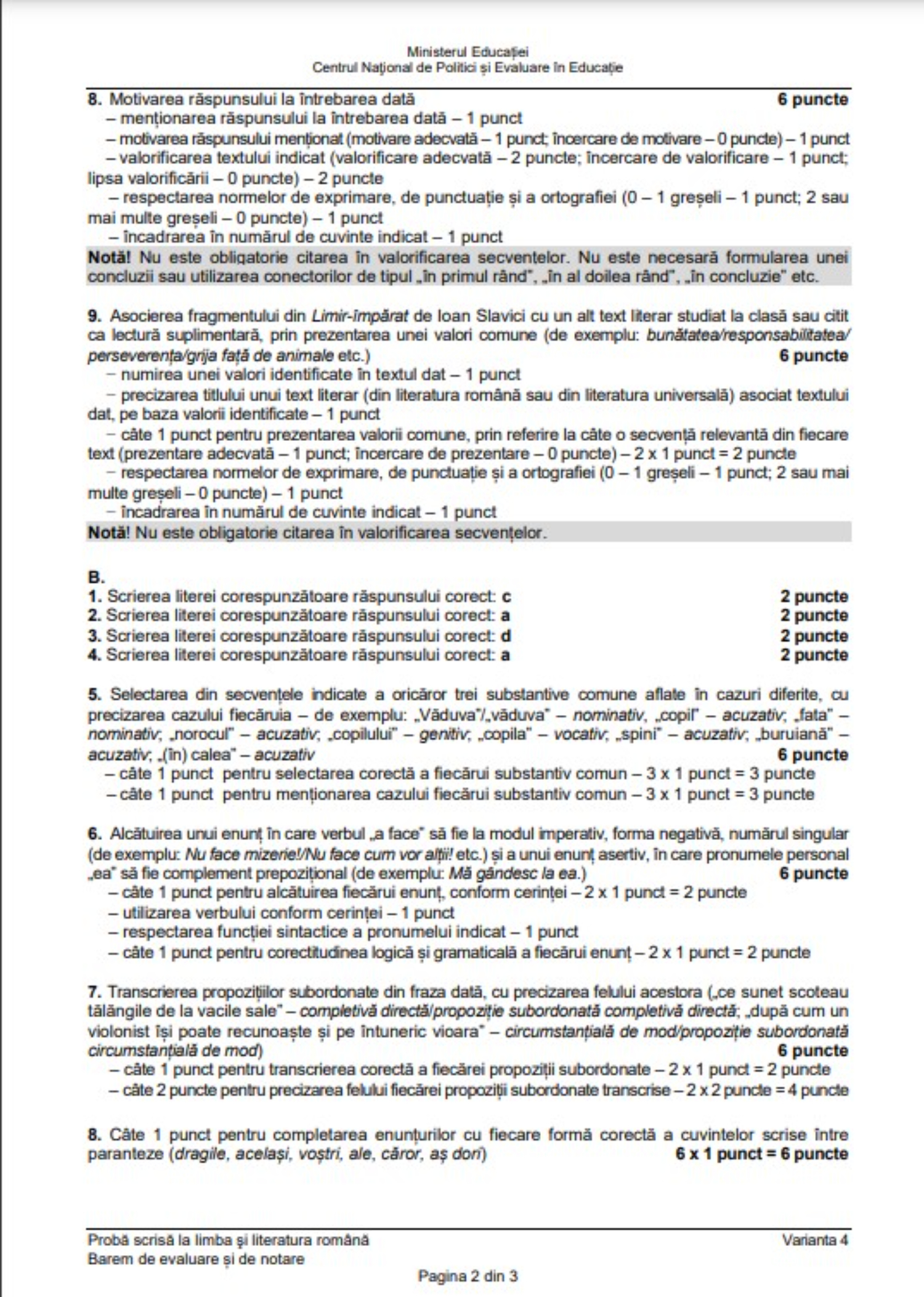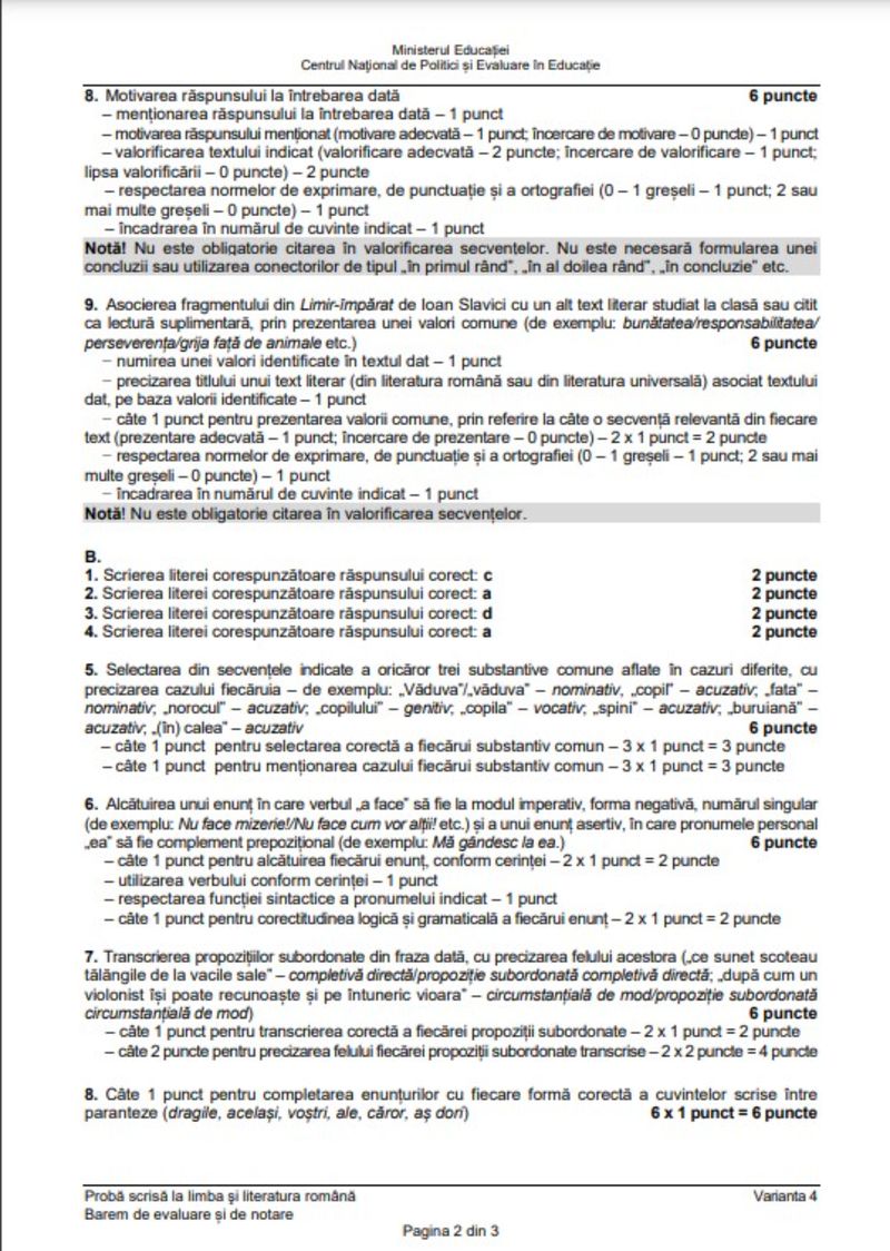 2 din 4 | Barem Evaluare Națională 2023 Română. Cum se rezolvă corect subiectele?