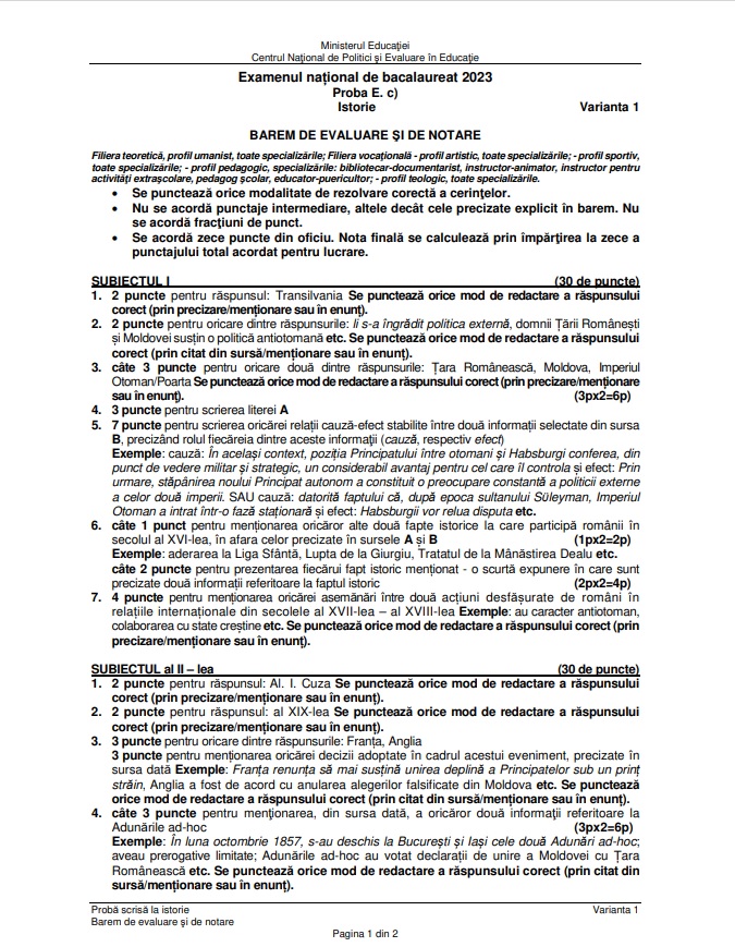 Barem Istorie BAC 2023 Edu.ro. Începând cu ora 09:00 elevii au primit spre rezolvare subiectele pentru examenul scris la Istorie. Candidații au avut la dispoziție trei ore pentru a rezolva cele trei subiecte prevăzute la examenul la Istorie.
