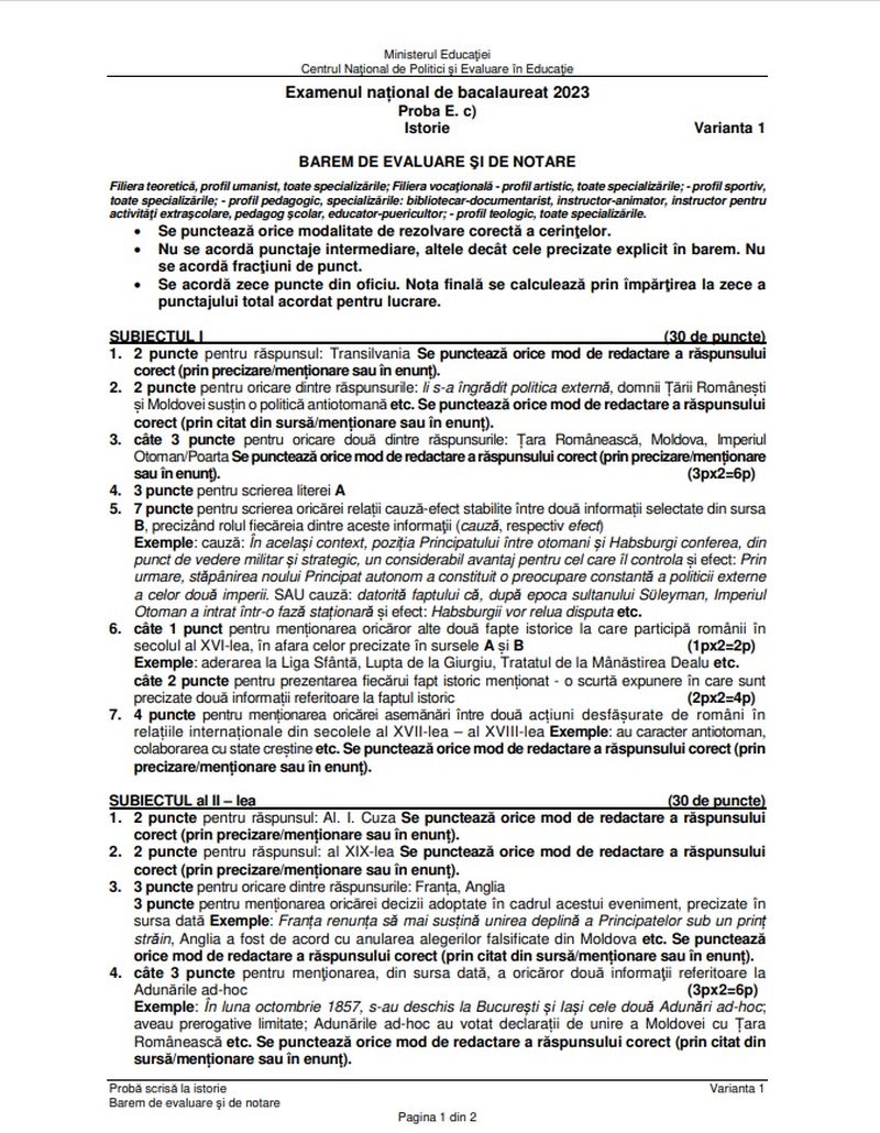 2 din 5 | Barem Istorie BAC 2023 Edu.ro. Verifică online răspunsurile corecte la Istorie!