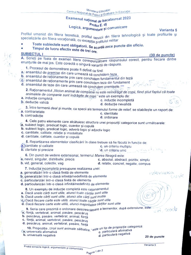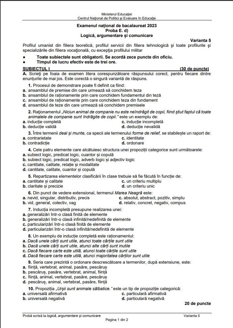 1 din 6 | Barem Logică BAC 2023 Edu.ro. Cum se rezolvă corect subiectele?