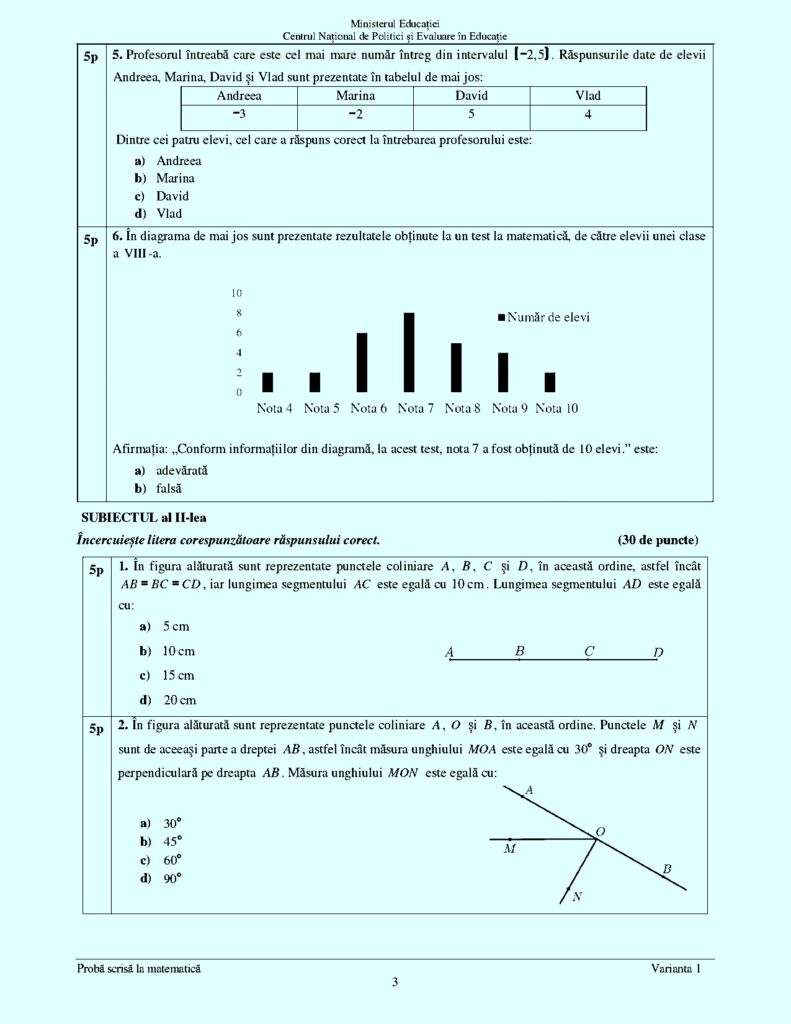 3 din 8 | Subiecte Matematică Evaluare Națională 2023 - Barem Matematică Evaluare Națională 2023