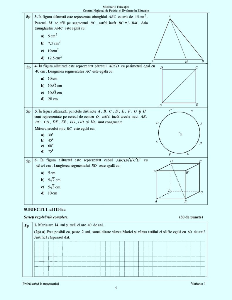 4 din 8 | Subiecte Matematică Evaluare Națională 2023 - Barem Matematică Evaluare Națională 2023