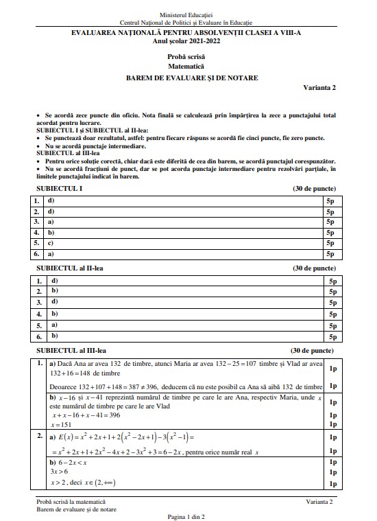 2 din 11 | Barem Evaluarea Națională 2022 Matematică EDU.RO