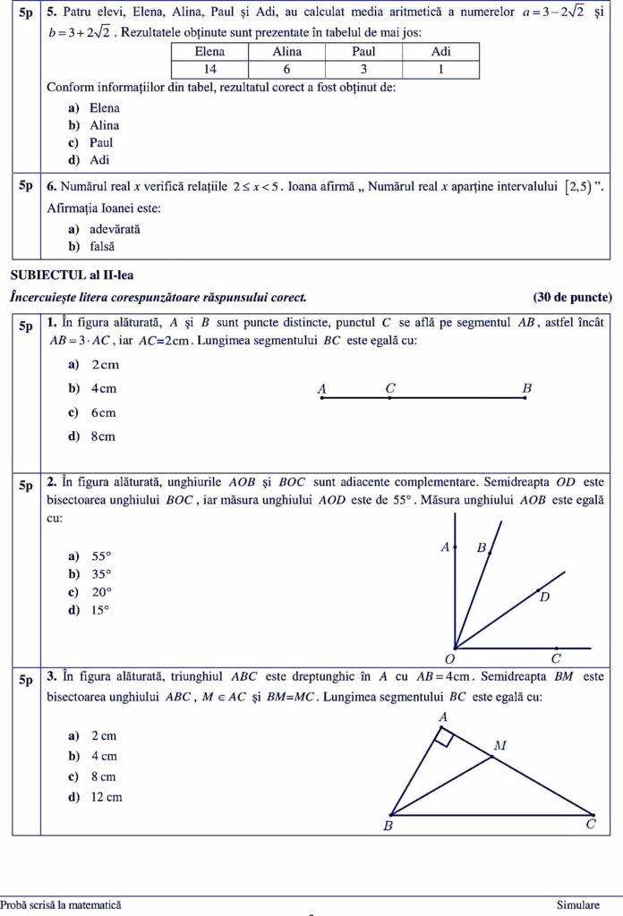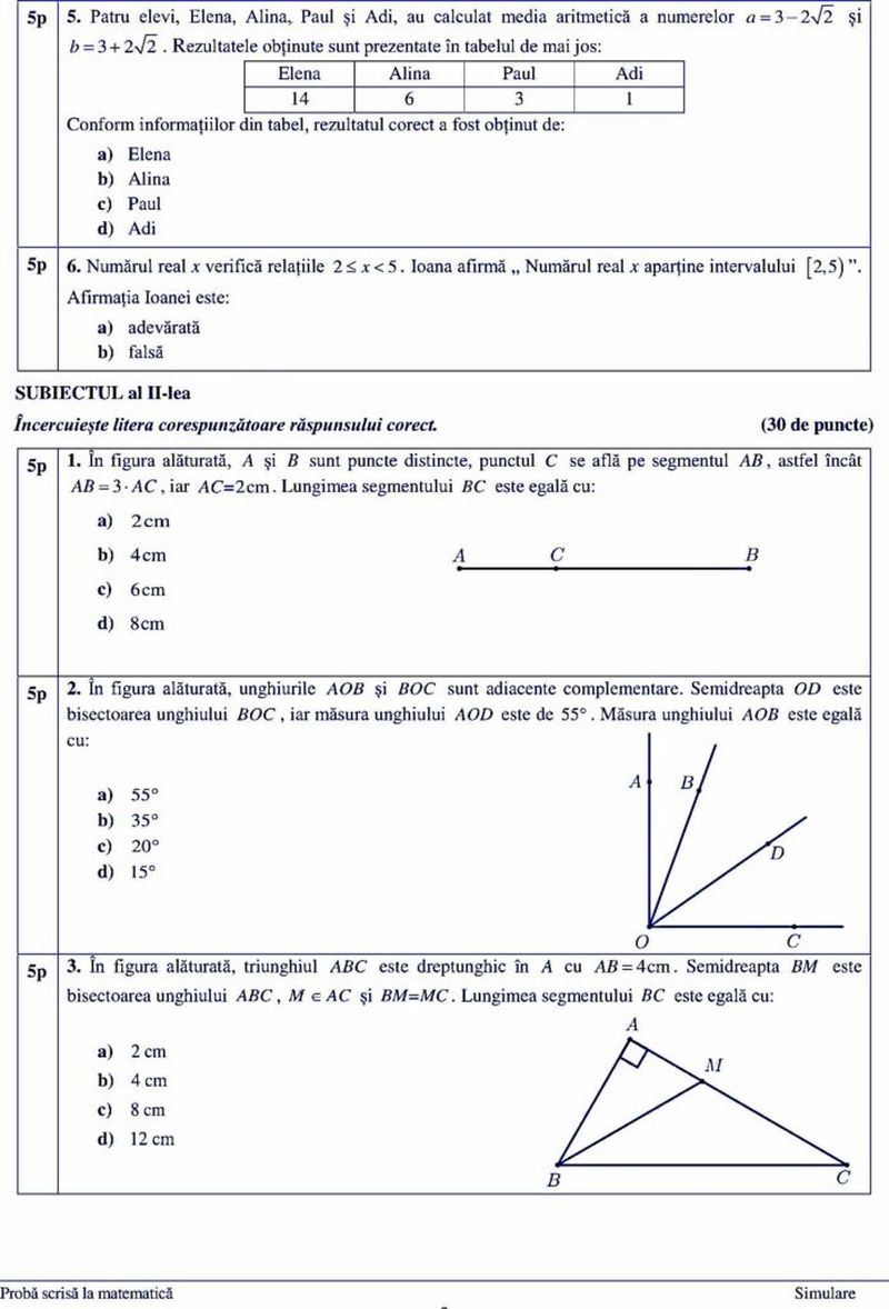 2 din 9 | Barem Matematică simulare Evaluare Naţională 2022