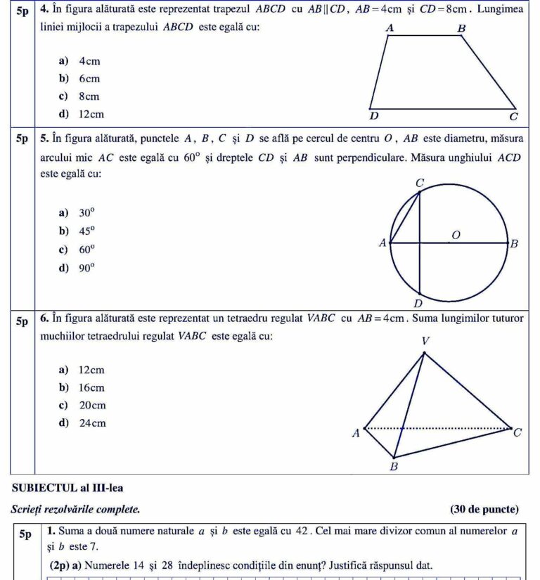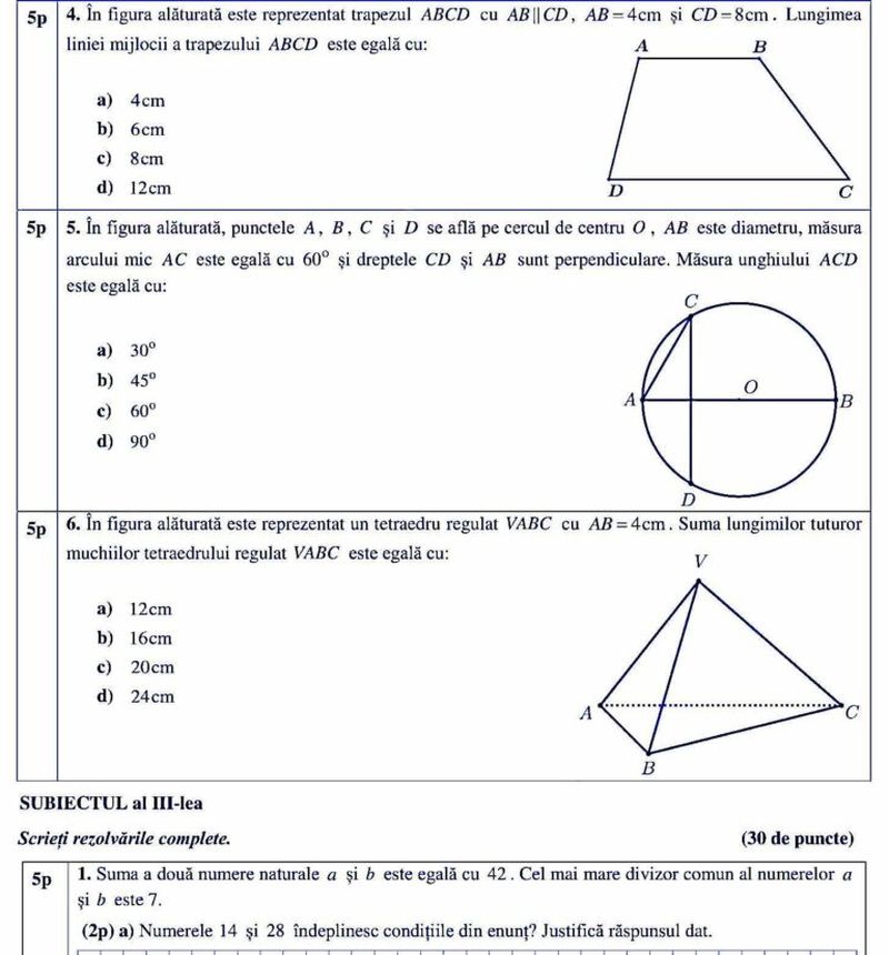 4 din 9 | Barem Matematică simulare Evaluare Naţională 2022: Rezolvările şi subiectele, publicate pe EDU.ro