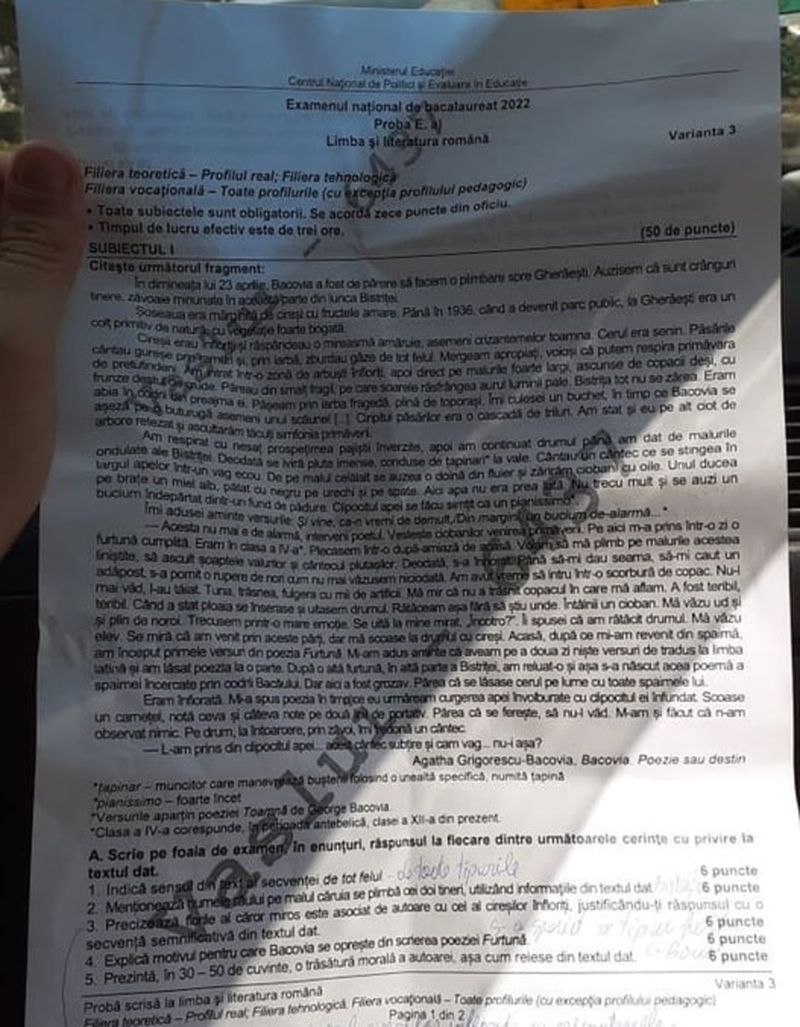 Citeste si: Subiecte Română BAC 2022 sesiunea de toamnă. Baremul de corectare, pe EDU.ro