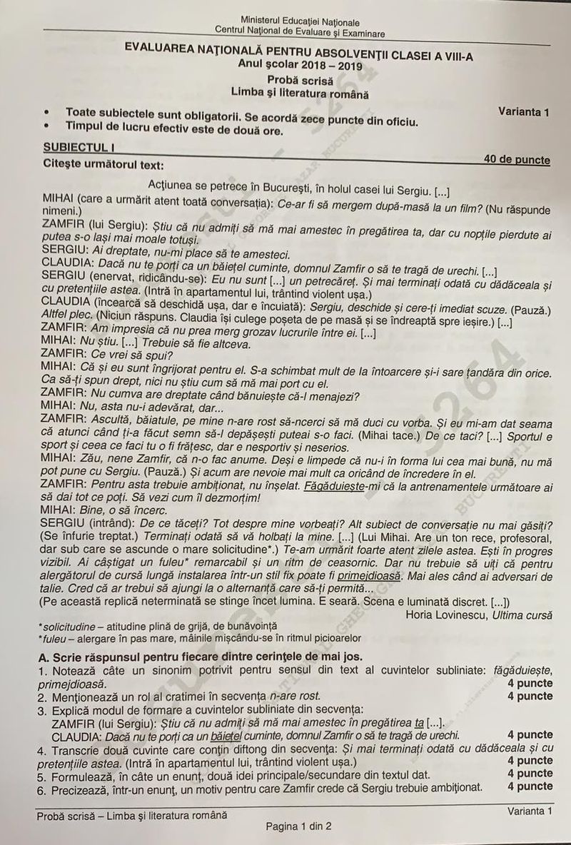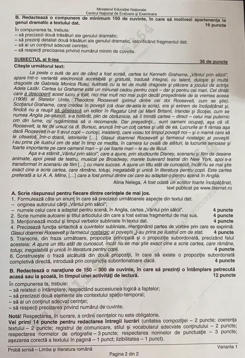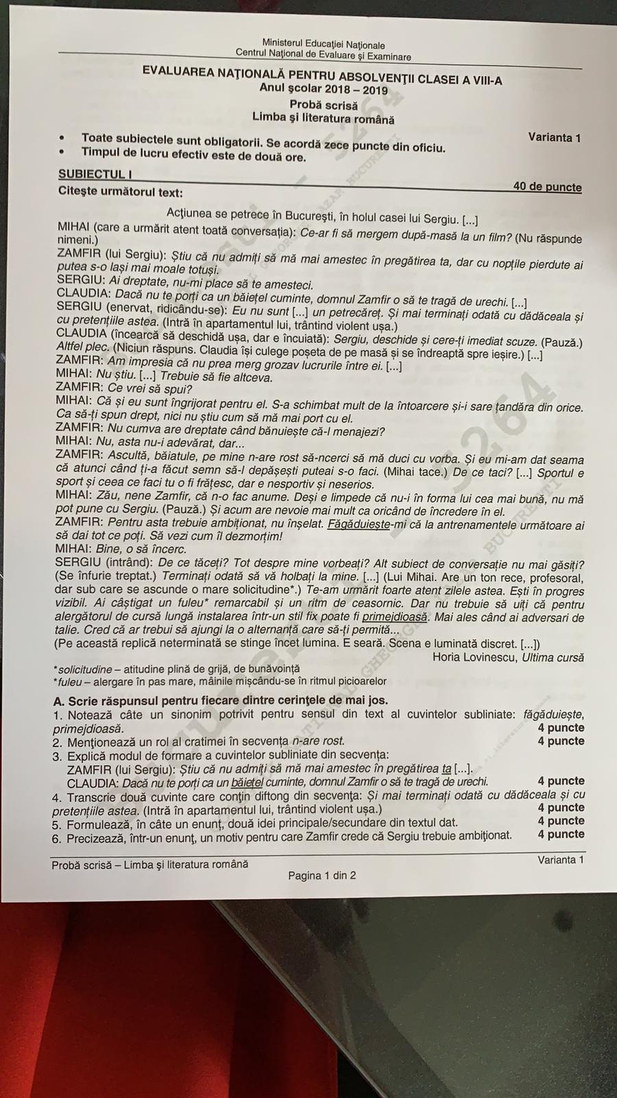 Citeste si: EVALUARE NAŢIONALĂ 2019. Subiectele la limba română