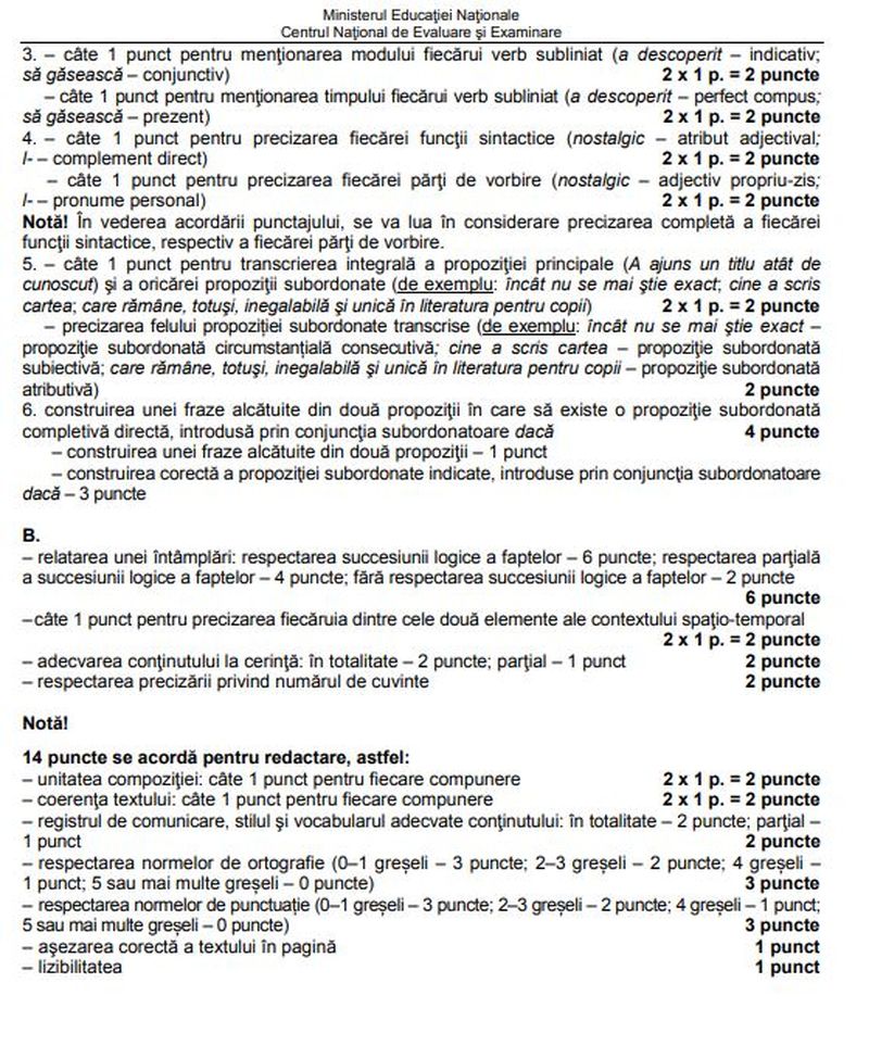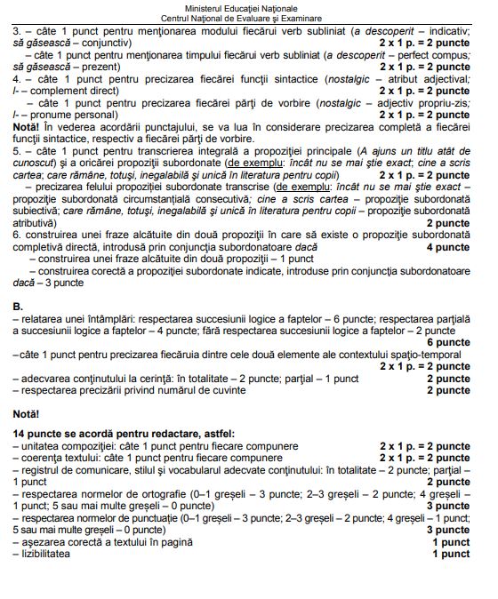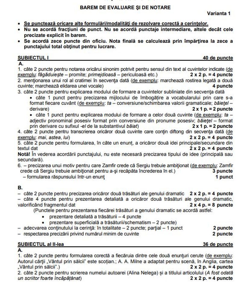 Iată şi baremele de la LIMBA ROMÂNĂ!