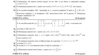 Subiecte și barem de corectare Matematică