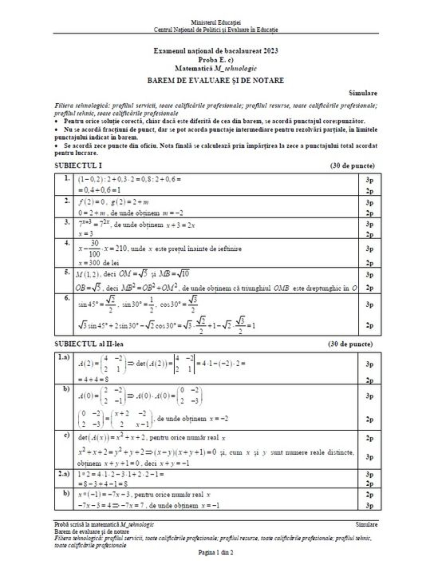 2 din 15 | Barem simulare BAC 2023 Matematică M1, M2, M3 şi M4: Rezolvări corecte!