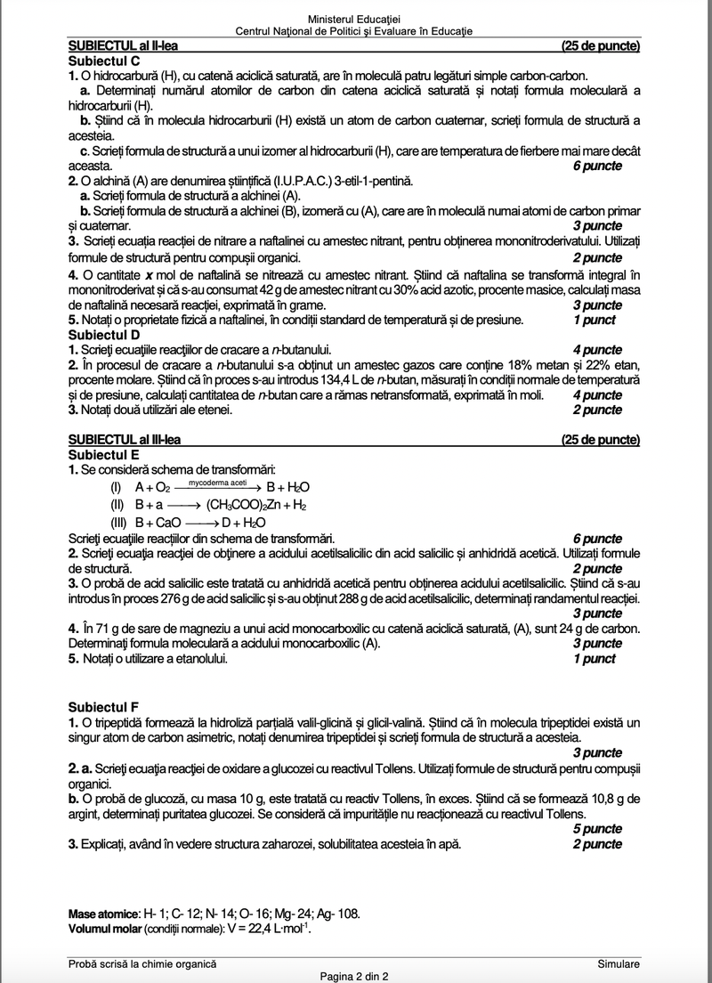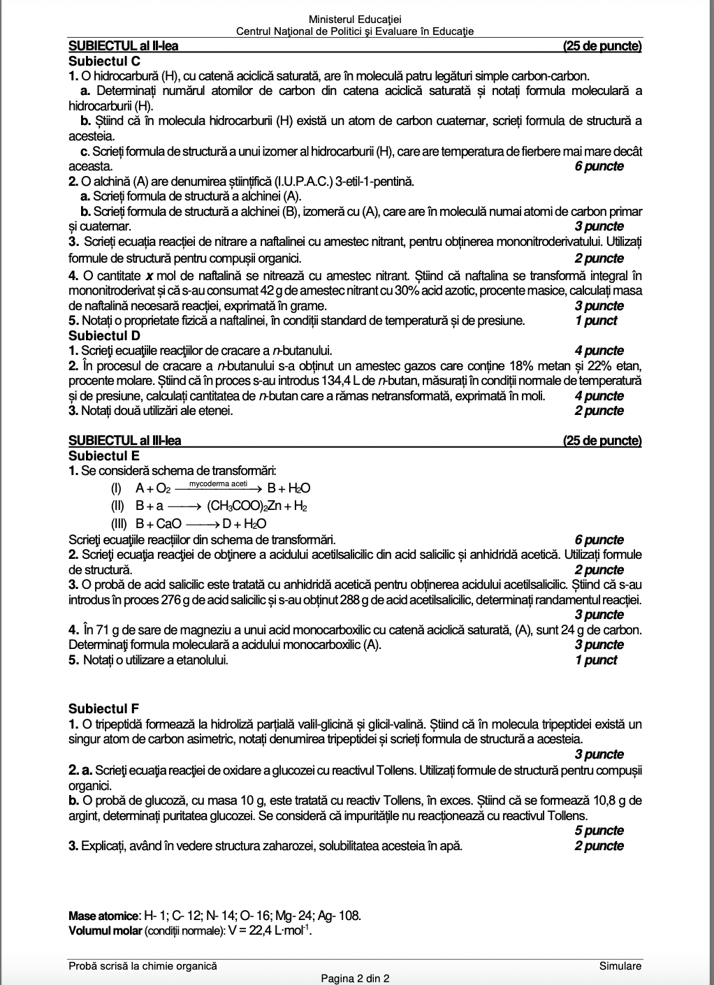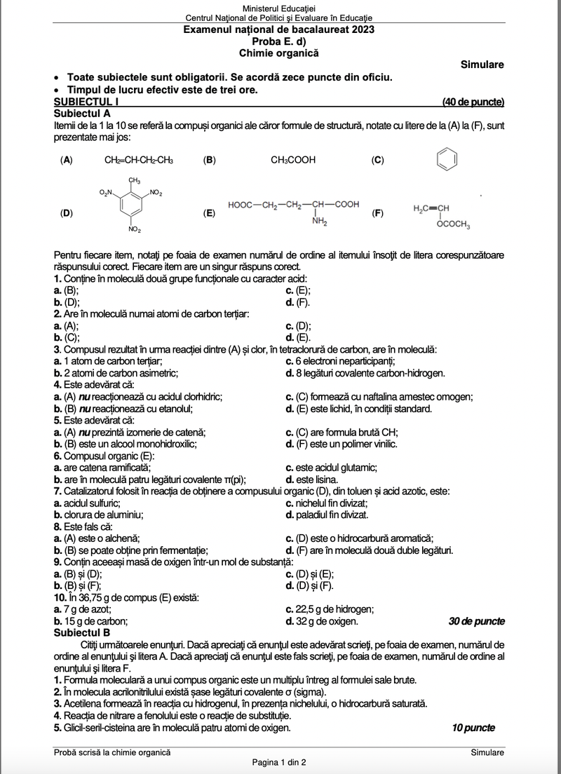3 din 7 | VIDEO - Barem simulare Chimie BAC 2023. Vezi răspunsurile corecte la chimie!