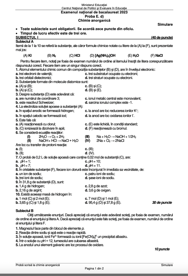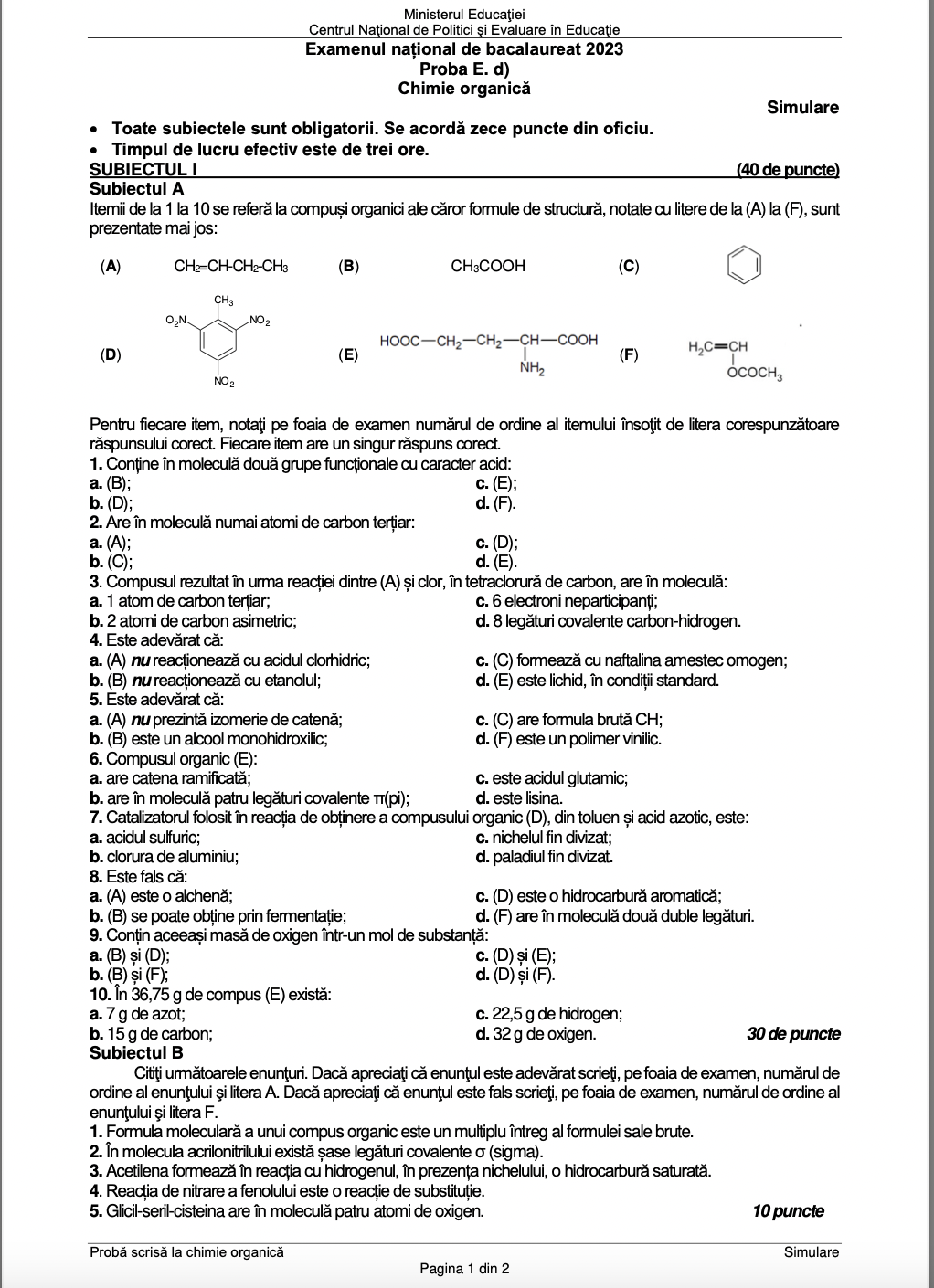 1 din 7 | Barem simulare Chimie BAC 2023. Vezi răspunsurile corecte la chimie!