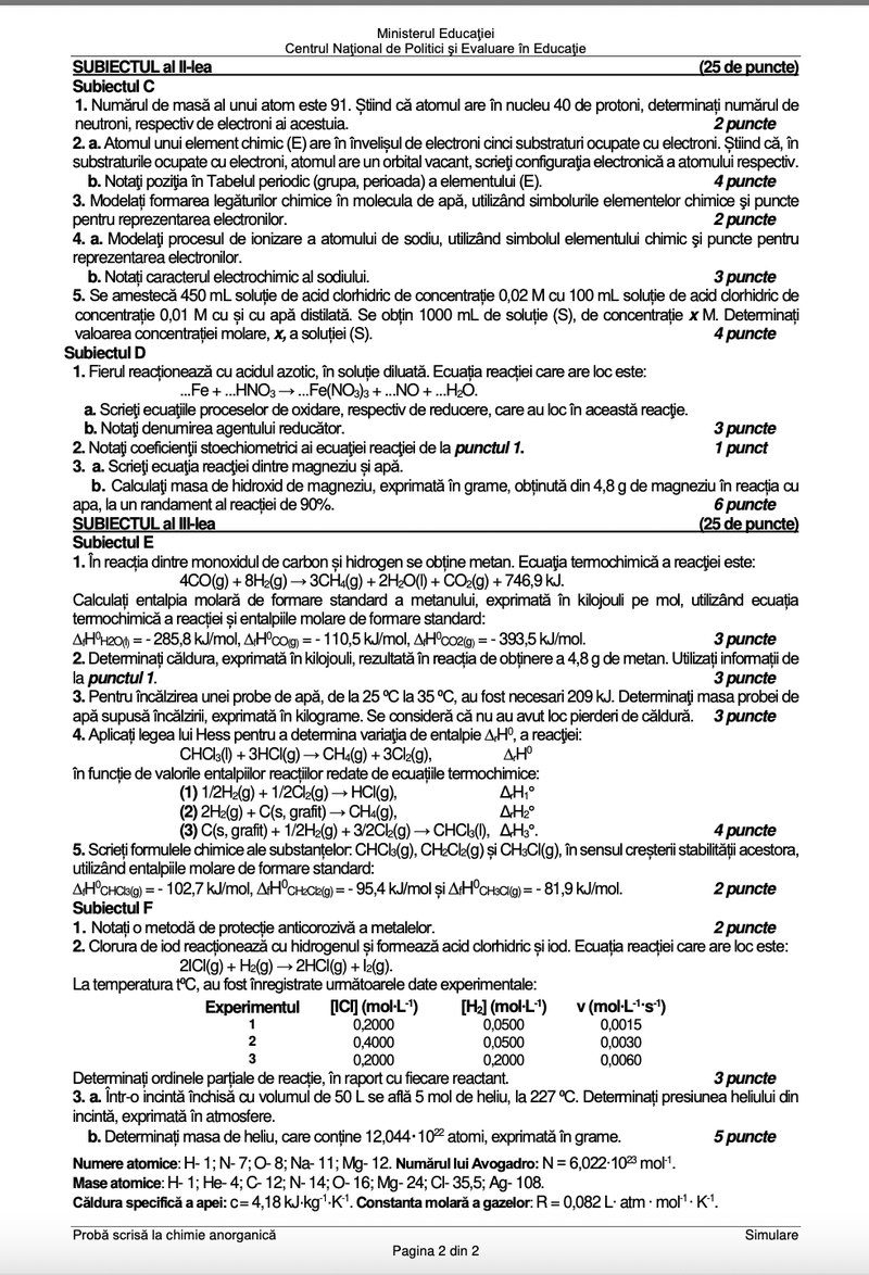 2 din 7 | VIDEO - Barem simulare Chimie BAC 2023. Vezi răspunsurile corecte la chimie!