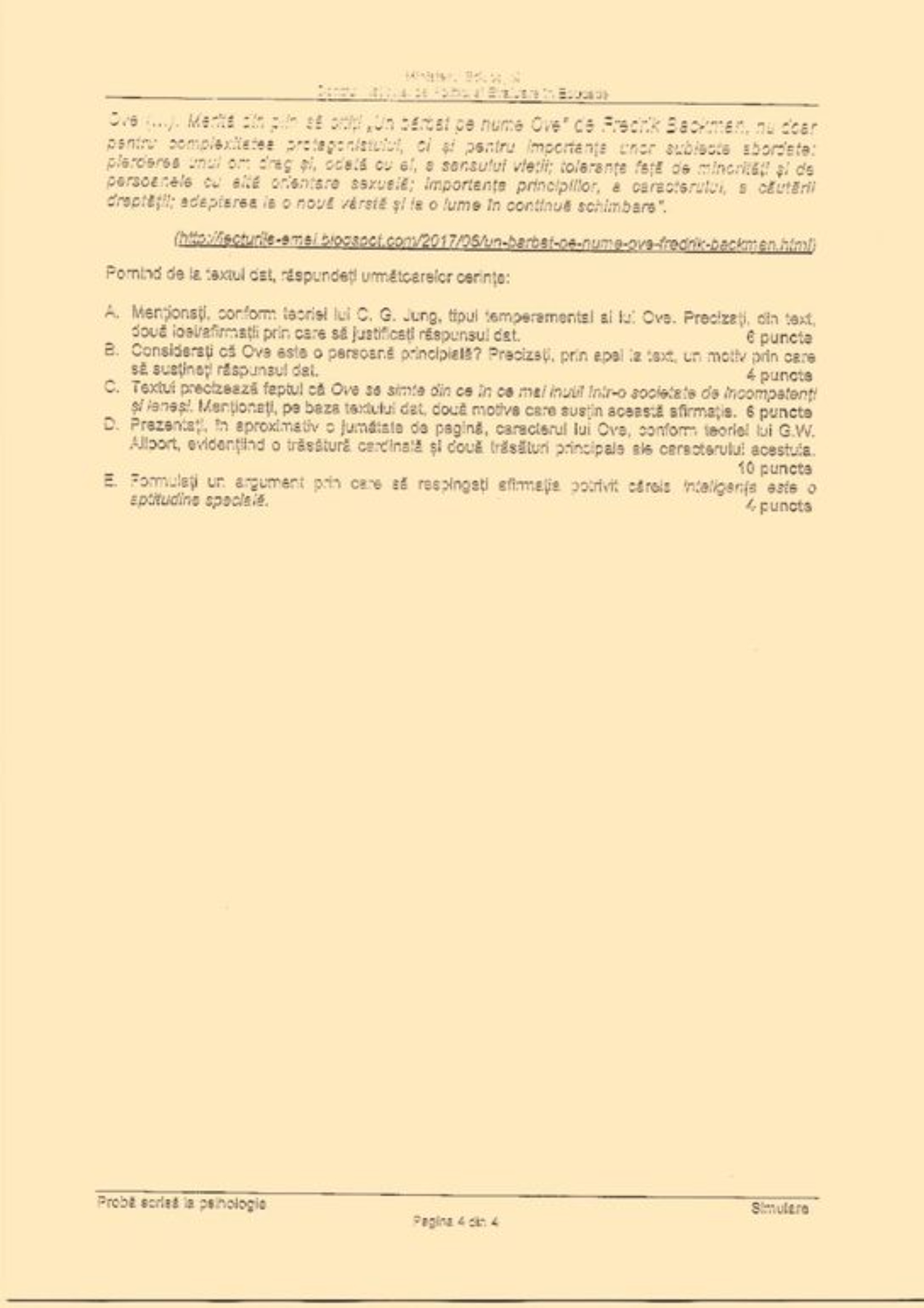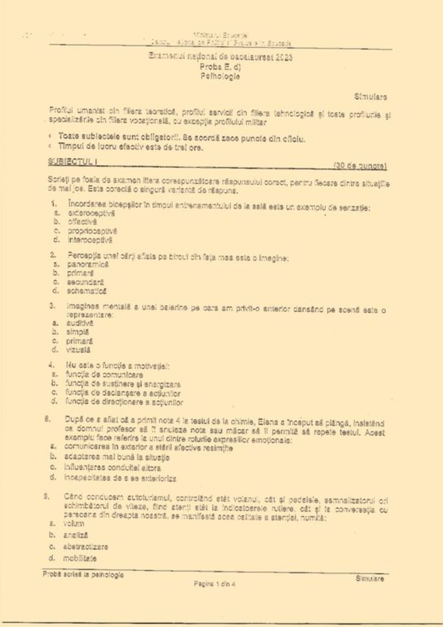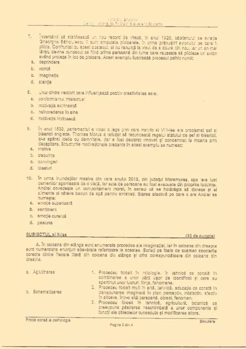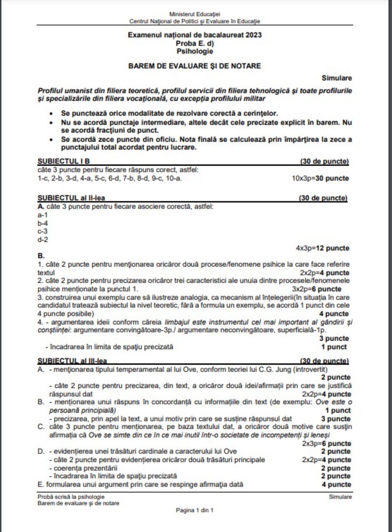 2 din 6 | Barem simulare Psihologie BAC 2023. Calculează-ți singur nota!