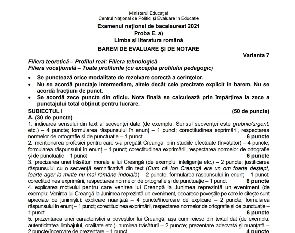 UPDATE: Baremul de corectare la simulare BAC 2022 Română se poate consulta pe http://subiecte.edu.ro/2022/simulare/simulare_bac_XII/