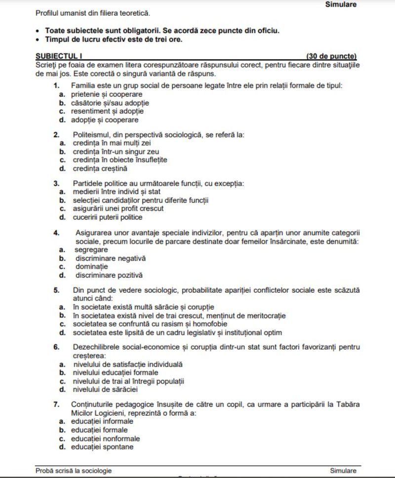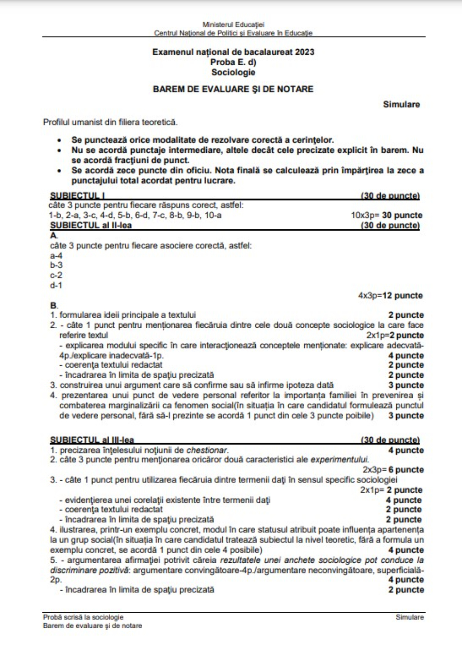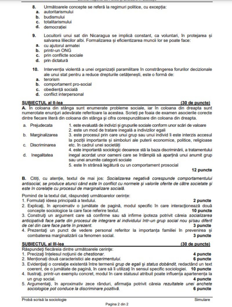 Iată care au fost subiectele și baremul de corectare la Sociologie!