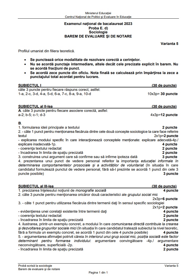 1 din 4 | Barem Sociologie BAC 2023 Edu.ro. Consultă răspunsurile corecte pentru a treia probă de la BAC!