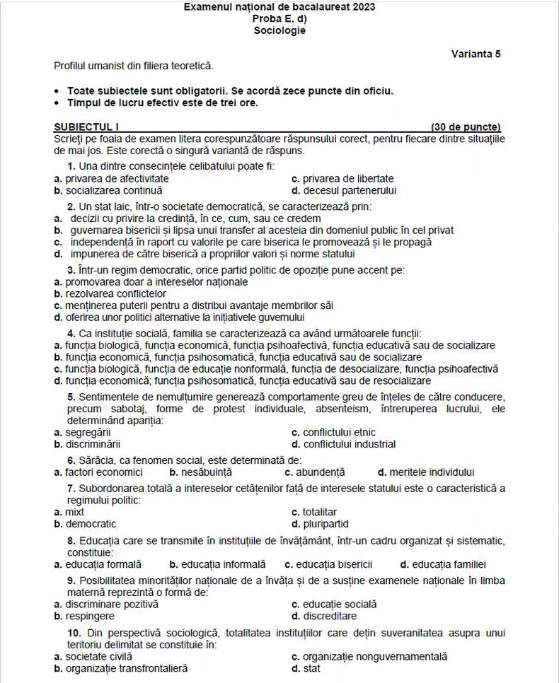 3 din 4 | Barem Sociologie BAC 2023 Edu.ro. Consultă răspunsurile corecte pentru a treia probă de la BAC!