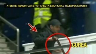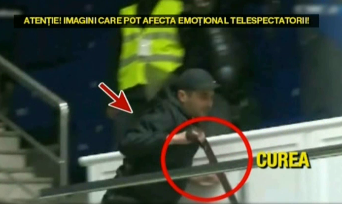 La un moment dat, unul dintre suporteri isi scoate cureaua si furios incepe sa-i loveasca cu catarama pe cei din tabara adversa.