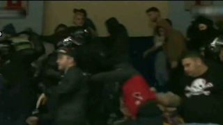 1 din 4 | Bataie ca in filme intre suporterii Stelei si ai celor de la Dinamo la un meci de handbal. Imagini incendiare de la fata locului