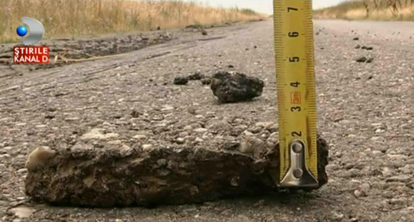 Aici sunt banii nostri, ai tuturor! Pentru aceste hartoape in care oamenii-si rup masinile, statul a platit aproape un milion si jumatate de lei. Drumul de care toti se plang are, totusi, un lucru al lui: a reusit sa bata doua recorduri absolute: timpul executiei si rapiditatea cu care s-a facut zob, apoi.