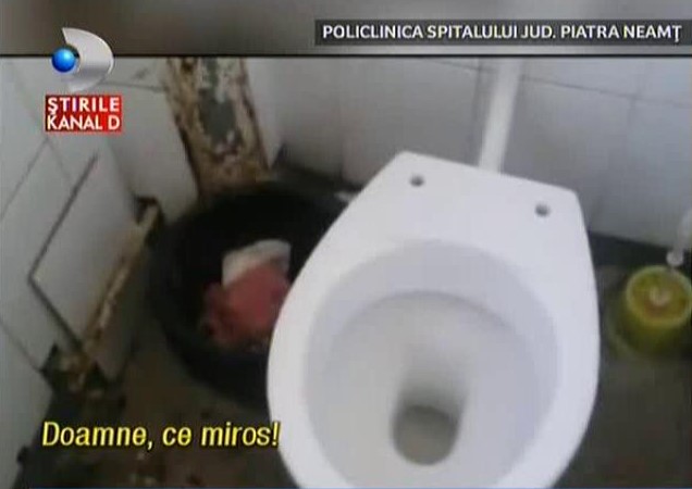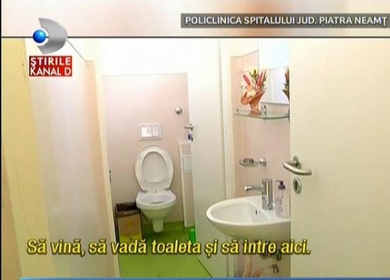 Angela Albeata -coordonator policlinica spitalului Neamt: In aceasta policlinica se perinda tot felul de persoane, de la pacienti, oameni, cersetori, taximetristi care folosesc toaleta.