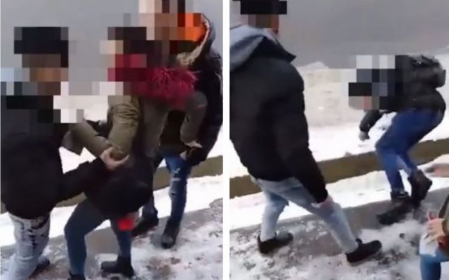 În imagini se vede cum atacatorul îi blochează drumul adolescentului, elev la liceul din localitate, care tocmai ieşise de la şcoală împreună cu o fată, şi îl loveşte puternic cu pumnul în faţă. În urma impactului, victima a căzut la şi a avut nevoie de ajutorul altor doi tineri pentru a se ridica.