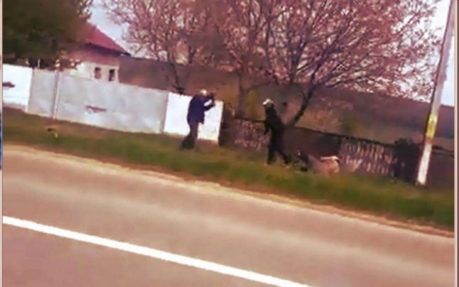Oamenii, trecuti bine de prima tinerete, aveau ceva de impartit si au decis sa o faca in mijlocul strazii si in mod "neaos" romanesc, cu armele de prin curte.