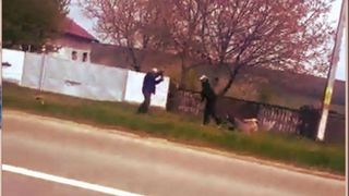 Imaginile au fost surprinse in data de 20 septembrie de catre un sofer care trecea prin zona si n-a putut sa ignore o asa bataie pe cinste.