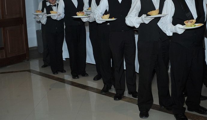 Ospatarul i-a explicat copilului ca nu poate intra in sala decat dupa dansul mirilor, deoarece usile strebuie sa ramana inchise in tot timpul momentului pentru ca se folosea gheata carbonica.