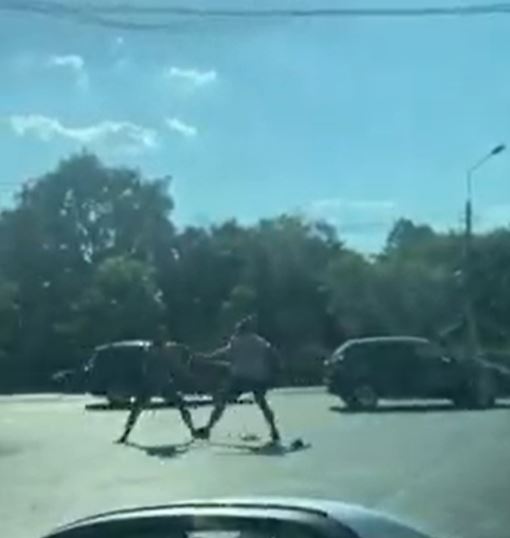 La un moment dat, individul se îndepărtează de mașină, iar șoferul iese din autoturism și începe să îl lovească pe agresor. Bătaia s-a încheiat în momentul în care a intervenit un al treilea bărbat.
