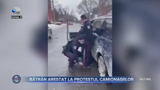 Stirea "Bătrân arestat la protestul camionagiilor" difuzata in cadrul Stirilor KANAL D din 9 02 2022