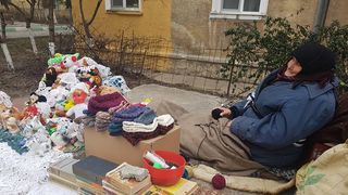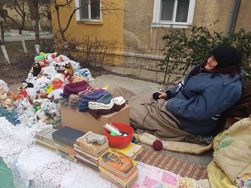 "Batranica ramasa singura pe lume, dupa ce fiul i-a murit, traieşte pe strada, în frig, şi vinde ciorapi croşetati de ea, pentru o paine.