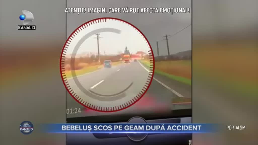 Stirea "Bebeluș scos pe geam după accident" difuzata in cadrul Stirilor KANAL D din 3 04 2022