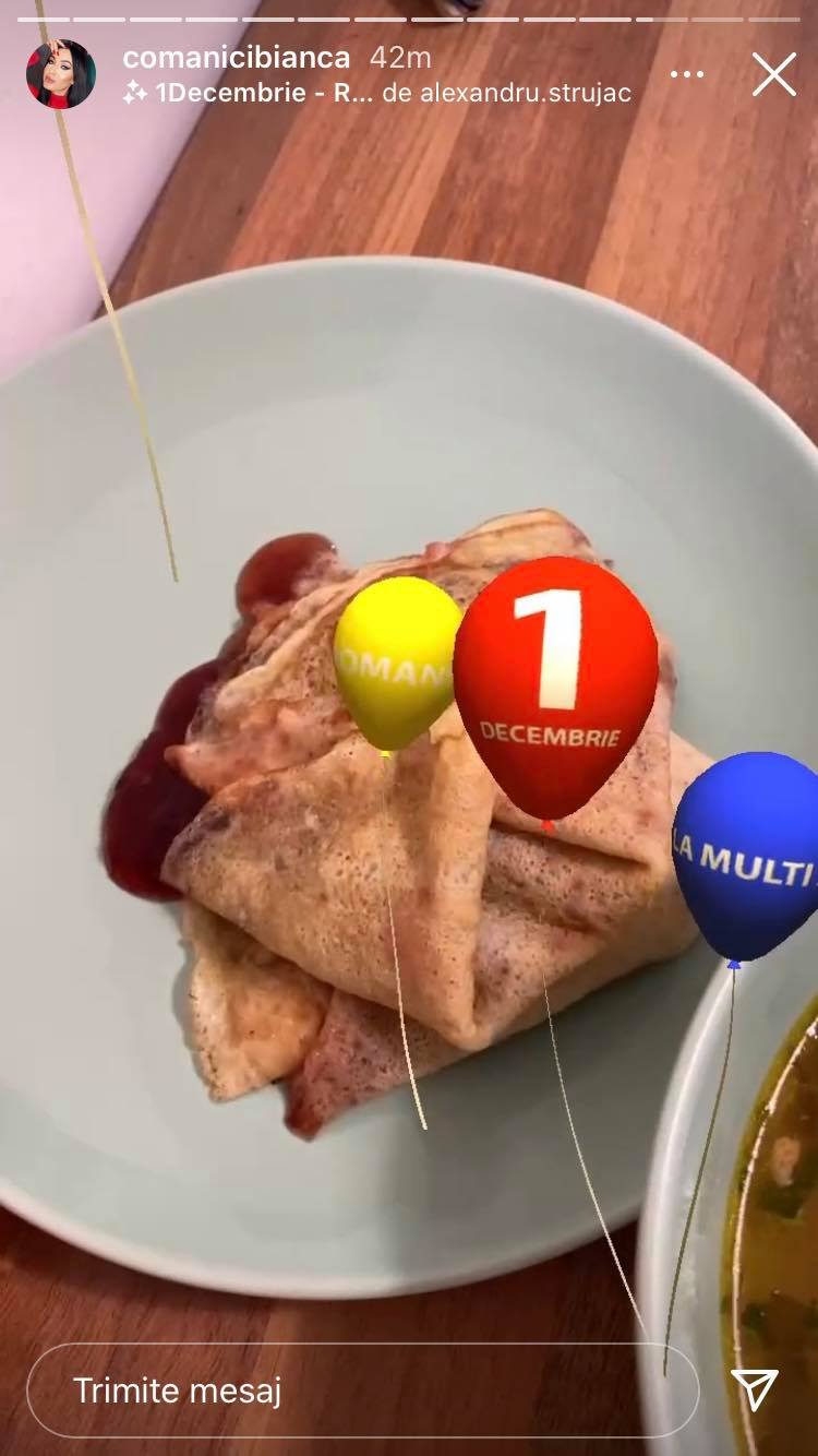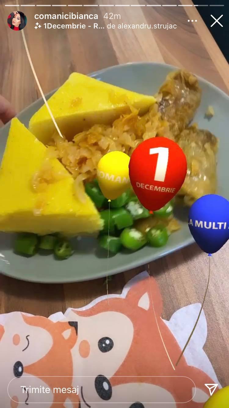 Bianca Comănici a mâncat românește de Ziua Națională a Romăniei. Bruneta a postat totul pe contul ei oficial de Instagram. „Sărbătoresc 1 decembrie așa cum se sărbătorește cu adevărat. Clătitele se mănâncă cu gem nu cu Nutella cum se face acum. Ciorbița nu din aia vegan...cu perișoare, cu vită, cu purceluș, nebunii. Sărmăluțe, bineînțeles cu de toate. La mulți ani!” a transmis fosta concurentă a emisiunii de la Kanal D.