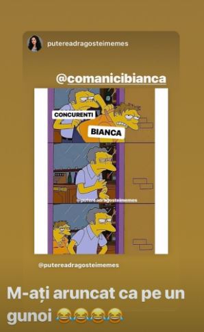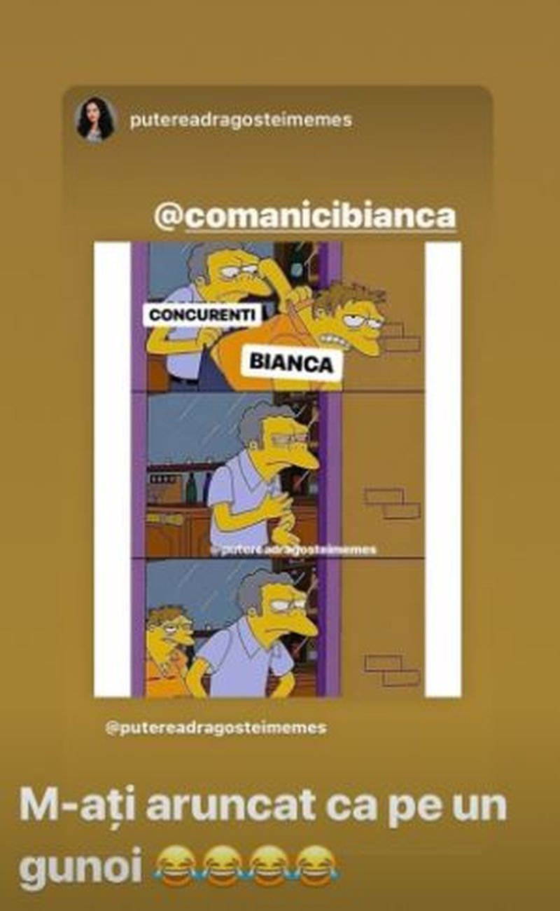 Mulțumesc, Bibisori! Multumesc colegilor care m-au votat! Multumesc, Andreea! Multumesc tuturor!! Nu uitați sa votați in continuare pentru sezonul 2!!! ❤️", sunt reacțiile Biancăi.