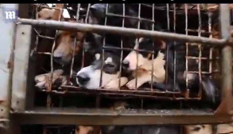 Imagini socante surprinse de organizatiile pentru protectia animalelor. Sute de caini au fost prinsi si urmeaza sa ajunga pe masa de Paste. Inainte sa fie ucise, patrupedele vor fi torturate.
